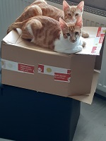 Anbei ein Bild von Louie (rot mit weiß) und Baghira (rot).